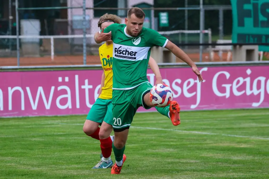 Den besseren Start in die Partie erwischten jedoch die engagiert auftretenden Gäste aus Bamberg, welche gefühlt stets einen Schritt schneller waren als ihre Gegenspieler aus Friesen. Die Heimmannschaft lies dabei zunächst vor allem das Tempo im Spielaufbau vermissen, sodass das Spiel in der ersten halben Stunde auf beiden Seiten ohne jegliche Torchance blieb. Der erste gefährliche Angriff der Heimelf führte dann jedoch direkt zur 1:0 Führung. Einen Pass von Louis Bachinger leitete der ballsichere und kampfstarke Maxi Graf sensationell direkt mit der Hacke weiter in den Lauf von Kapitän Noah Schorn, welcher den Ball im Anschluss eiskalt flach im Eck zur umjubelten Führung versenken konnte.