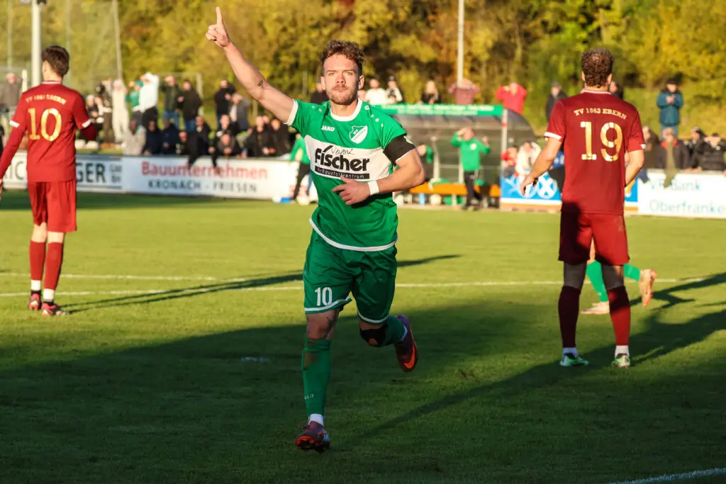 In der zweiten Halbzeit ließen die Gäste aber nicht locker. Der spielstarke Joseph Weiß tänzelte auf dem Weg zum Tor drei Friesener aus und suchte den Abschluss, der allerdings von Preißler abgewehrt werden konnte, den Abpraller verwandelte Daniel Scharting sicher zum 0:1 der Gäste. (0:1, 50 Minute, Scharting) Der Rückstand war ein Weckruf für die Friesener, die jetzt immer besser in die Partie fanden. Eine Hereingabe von Noah Schorn auf den Kopf des eingewechselten Dustin Renk konnte dieser nicht verwerten. In der 76. Minute war es wieder Noah Schorn, der sich durch die Eberner Abwehrreihe schlängelte und zum Abschluss kam, dieser konnte allerdings von Torwart geklärt werden auf den Fuß des lauernden Kilian Krug, der das Leder gekonnt in die Maschen hämmerte und den Ausgleich besiegelte. (1:1,76. Minute, Krug) Von den Gästen war im weiteren Spielverlauf nichts mehr zu sehen und die Friesener lauerten auf den Lucky Punch, der in der 94. Minute tatsächlich gelang. Der Kapitän Noah Schorn steckte auf Louis Bachinger durch, der Zug zum Tor aufbaute, zwei Ebener Abwehrspieler stehen ließ und Dustin Renk in der Mitte bediente, der flach ins Tor zum vielumjubelten Siegtreffer einschob. (1:2, 94. Minute, Renk)
